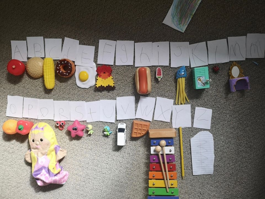 - Organizes letters in alphabetic order, or make sight words with an object for each initial letter sound