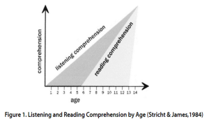 Listening comprehension is an important part of reading comprehension. Decades of research confirm that listening comprehension outpaces reading comprehension from early childhood through at least middle school.